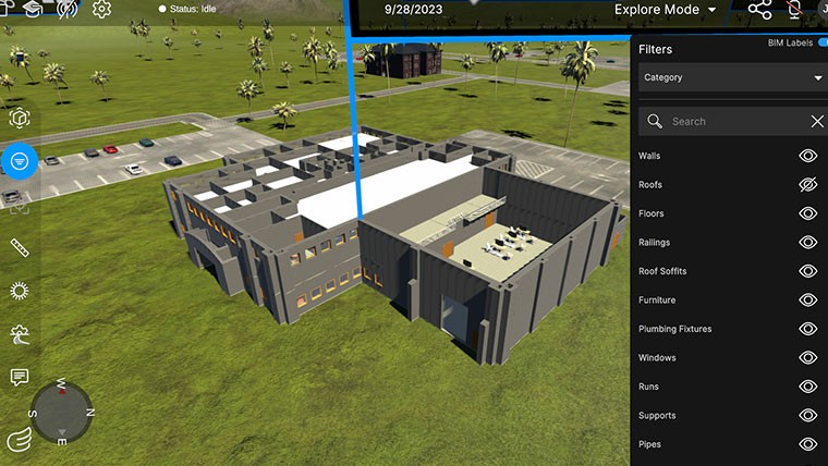 This collaborative facility-based digital twin, built with Unity, allows stakeholders across the facility lifecycle to explore different layers of building information models (BIMs) as they conduct virtual site surveys and quickly and easily locate underground, unseen utilities infrastructure to inspect components and plan for future investments.